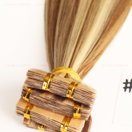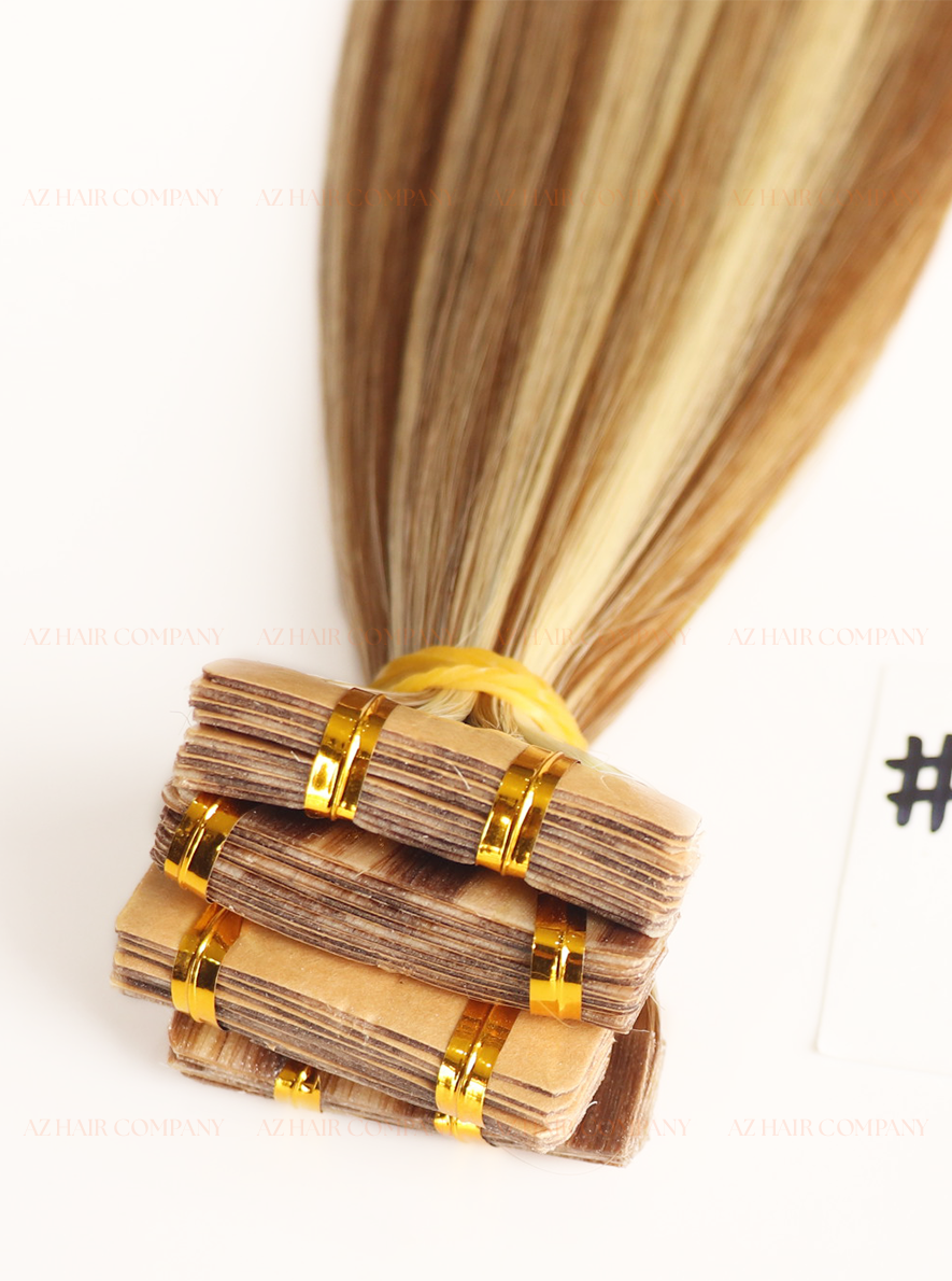 The harmonious combination of cool light blonde #60ash and deep chocolate brown #4ash creates a striking yet refined highlight effect. The Regular Tape In adhesive is secure, ultra-thin, lightweight, and provides excellent hold without weighing down the hair. It is easy to replace, easy to maintain, and comfortable for daily wear. Instantly adds volume and length, giving the hair a fuller, more glamorous look. A trendy, youthful style that reflects light beautifully in any setting.