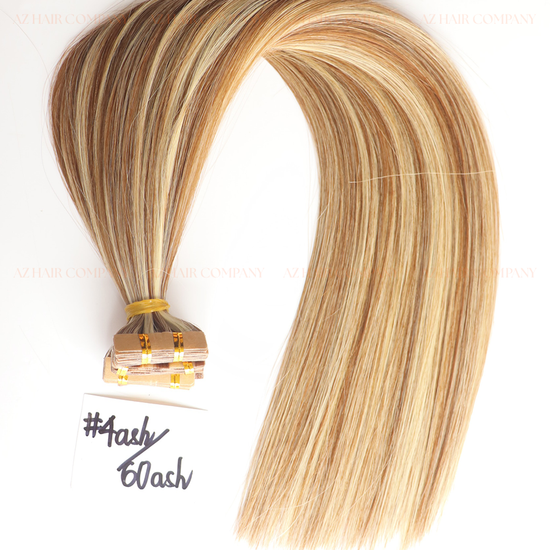 Highlight (#60ash/#4ash) Regular Tape In Hair Extensions – a stylish, natural-looking blend of light and dark tones.