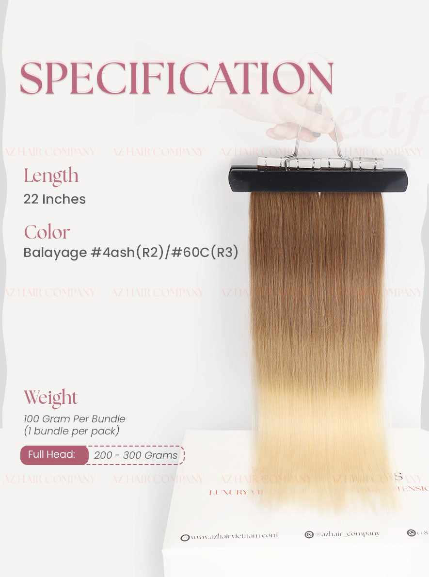 We are proud to introduce our Regular Tape In Hair Extensions in Color Balayage #4ash/#60C – one of the most popular shades in the international market. With high-end, salon-grade blending techniques, the refined harmony of deep ash brown (#4ash) and cool, bright platinum (#60C) creates a soft, natural, and luxuriously elegant balayage effect. The ultra-thin tape sits flat against the scalp for a natural, invisible finish and offers excellent durability, making it ideal for long-term wear. As a direct manufacturer, we provide competitive pricing with no middlemen involved.