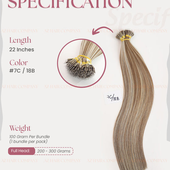 Highlight (#7C/18B) Nano Tip Hair Extensions 100g