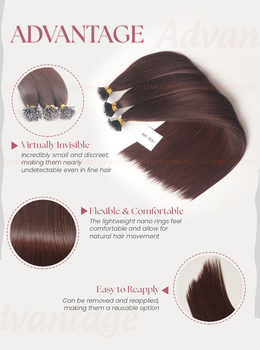 Achieve a flawless, natural look with our Nano Tip Hair Extensions in Color #2C, a cool-toned brown shade that exudes elegance and versatility. These extensions feature ultra-small nano beads for a discreet and seamless application, blending effortlessly with your natural hair. Made from 100% premium human hair, they offer lightweight comfort and can be styled, curled, or straightened to suit your desired look. Perfect for adding length, volume, or a touch of ash-brown sophistication, these extensions provide a long-lasting and stunning transformation with minimal maintenance.