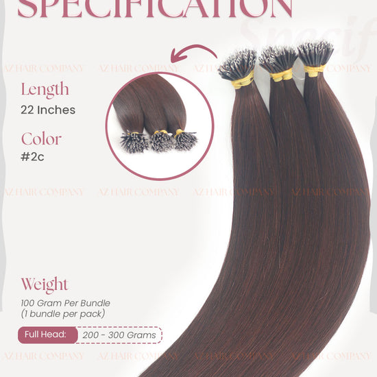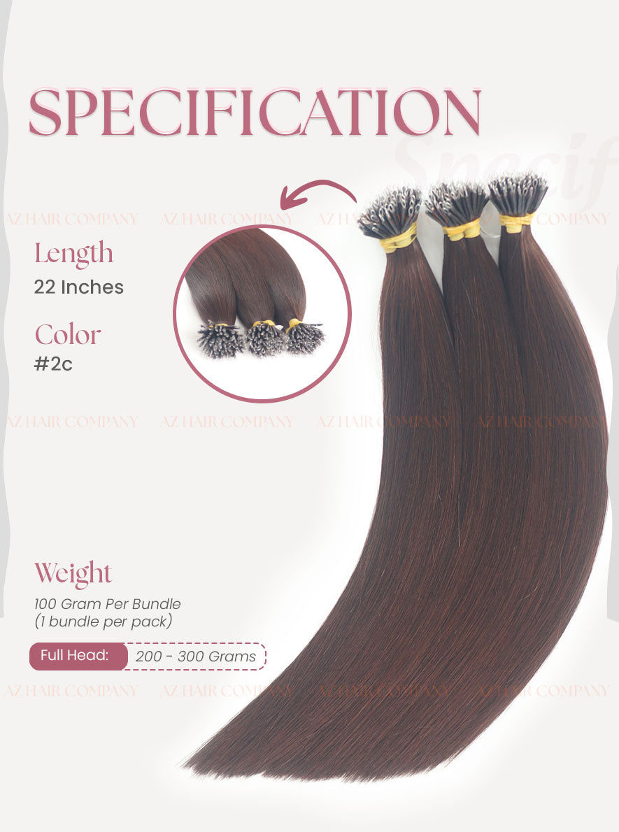 Dark Brown (#2C) Nano Tip Hair Extensions 100g