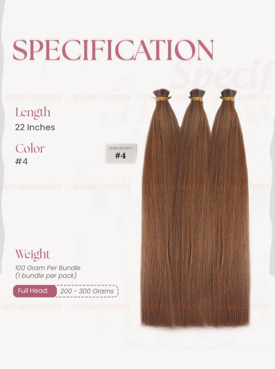 Light Brown (#4) I - Tip Hair Extensions 100g