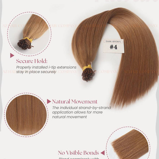 Enhance your natural beauty with Light Brown (#4) I-Tip Hair Extensions — a soft, warm light brown shade that adds a youthful, radiant look while keeping everything elegant and refined.