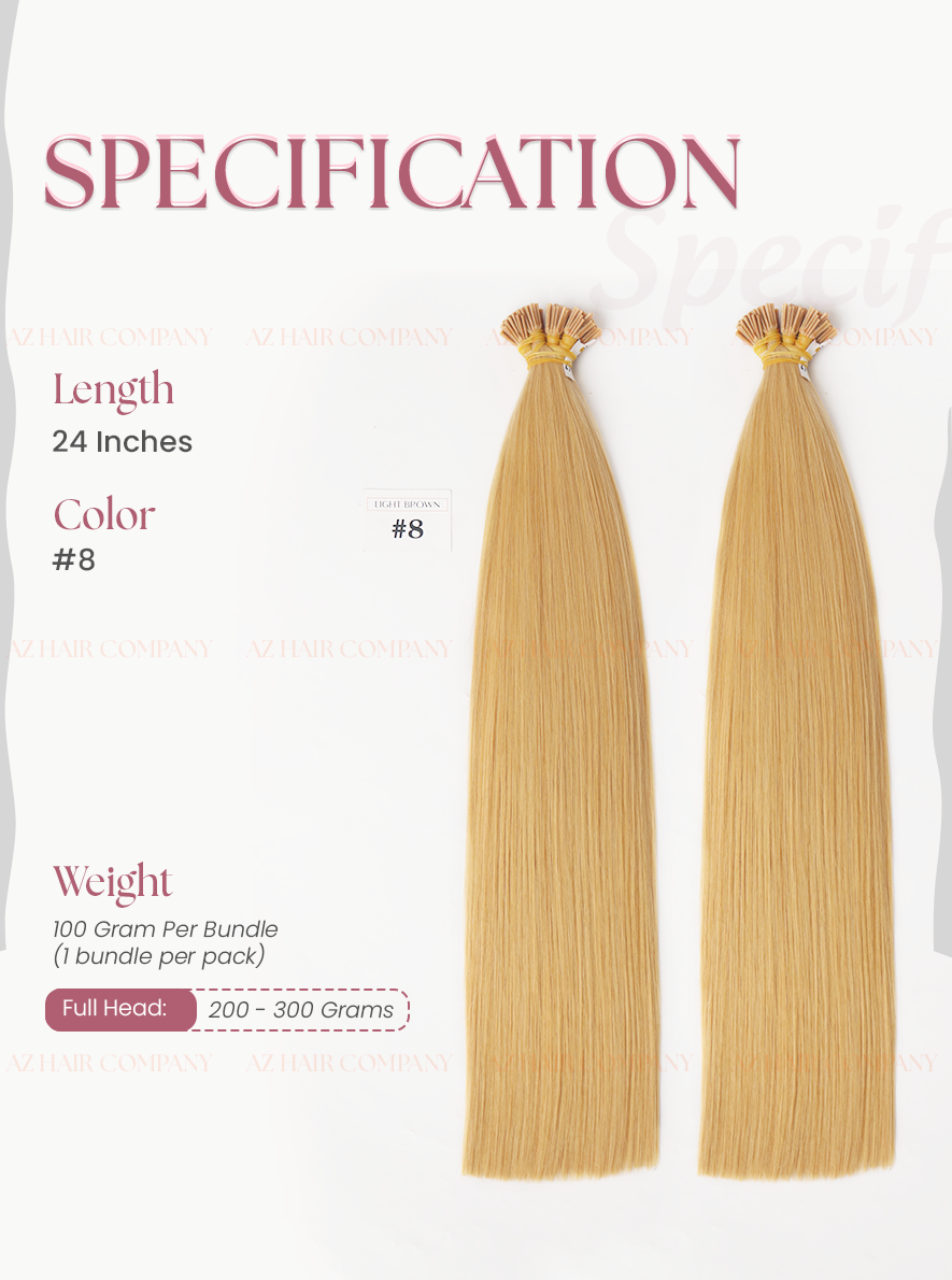 I–Tip Hair Extensions in Light Brown (#8) — a warm, naturally bright light–brown shade that is incredibly versatile and easy to wear. Color #8 delivers a soft, refined brown tone that enhances brightness and smoothness while complementing a wide range of skin tones. Made from 100% Vietnamese Remy human hair, the strands are silky, strong, tangle-resistant, and hold style beautifully. The small, lightweight I–Tip keratin bonds ensure a secure, comfortable attachment that doesn’t weigh down the natural hair and allows easy styling. Ideal for both professional salons and individual users. We are committed to providing a premium, professional, and seamless shopping experience — from personalized consultation to thoughtful after-sales support.